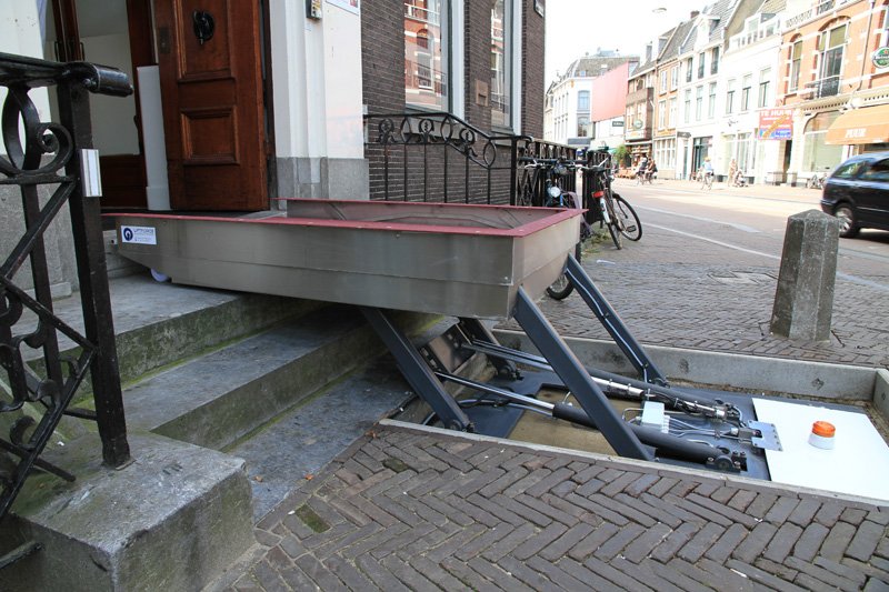 In het centrum van Utrecht hebben we een Hydro Plateaulift geplaatst om het monumentale pand rolstoeltoegankelijk te maken. Er is bij de gemeente Utrecht gekozen voor deze lift, zodat het aanzicht van de entree van het pand niet wordt aangetast.